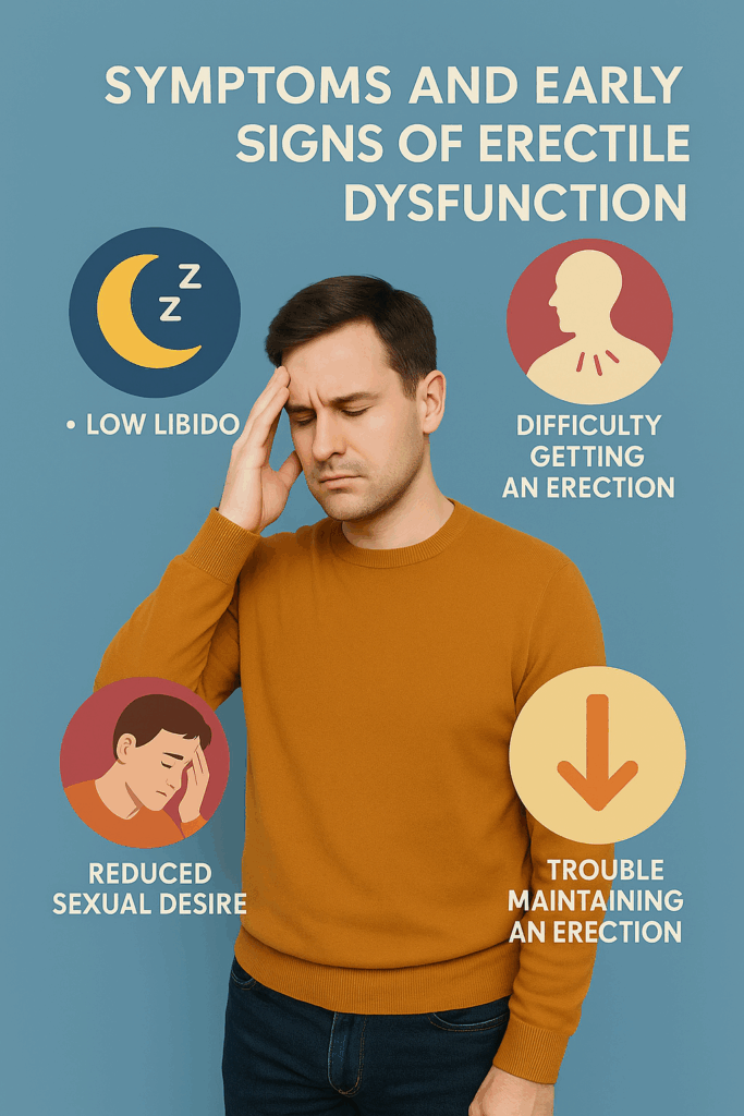 A: Early recognition of erectile dysfunction symptoms is crucial as it can lead to timely medical intervention, preventing further complications. Common early symptoms include difficulty in achieving an erection, reduced sexual desire, and issues maintaining an erection during intercourse. Addressing these signs promptly can improve treatment outcomes.